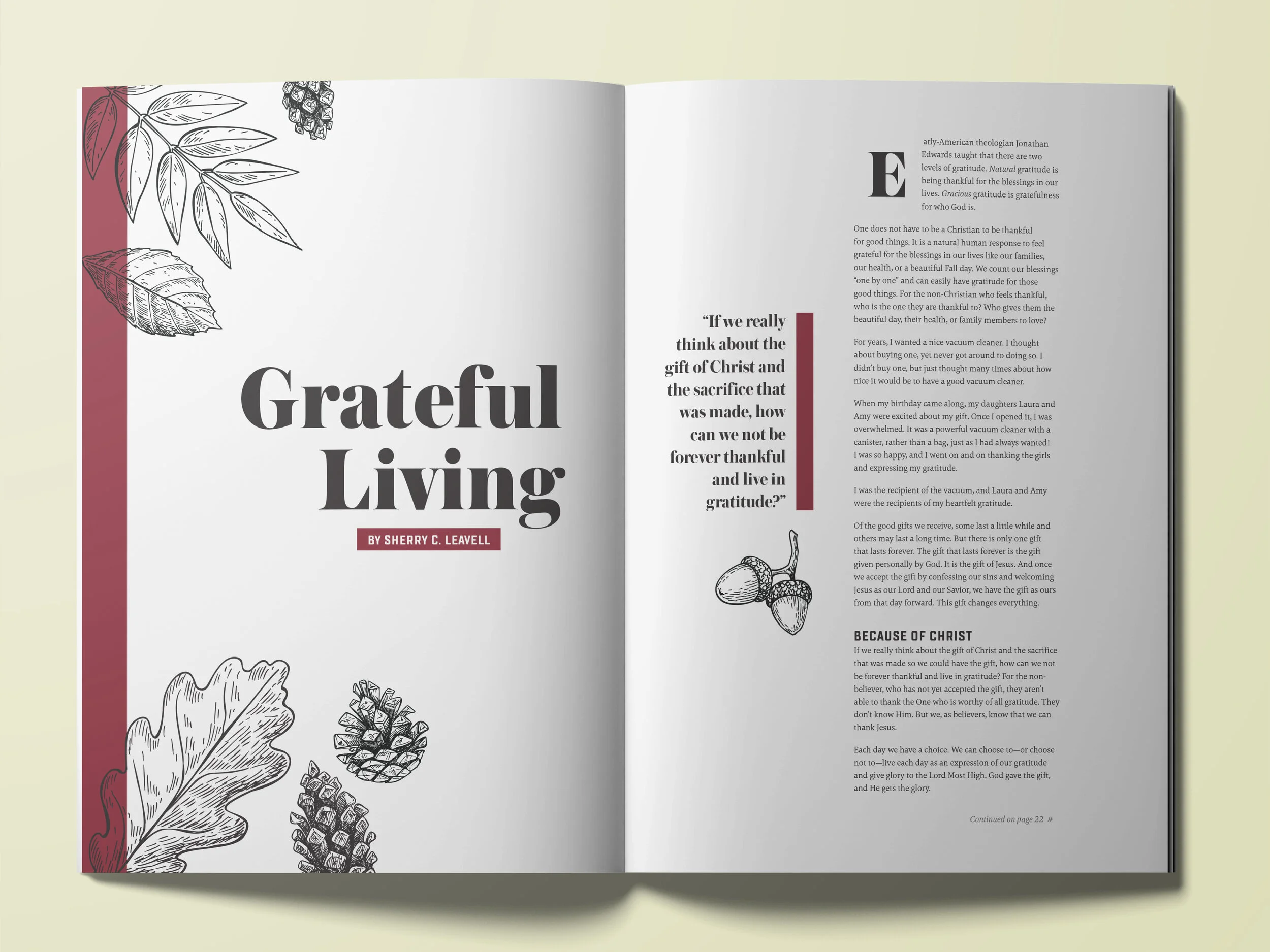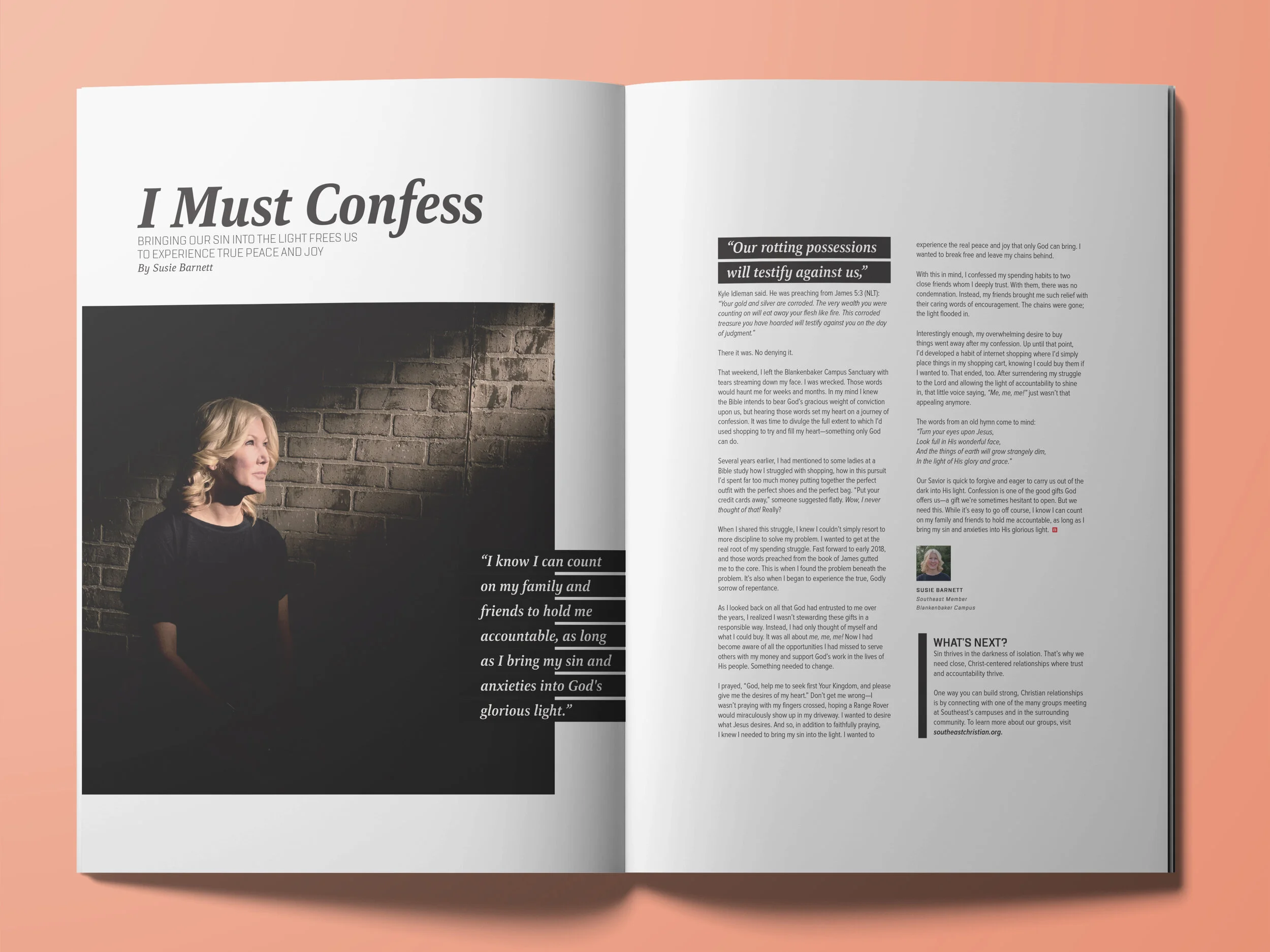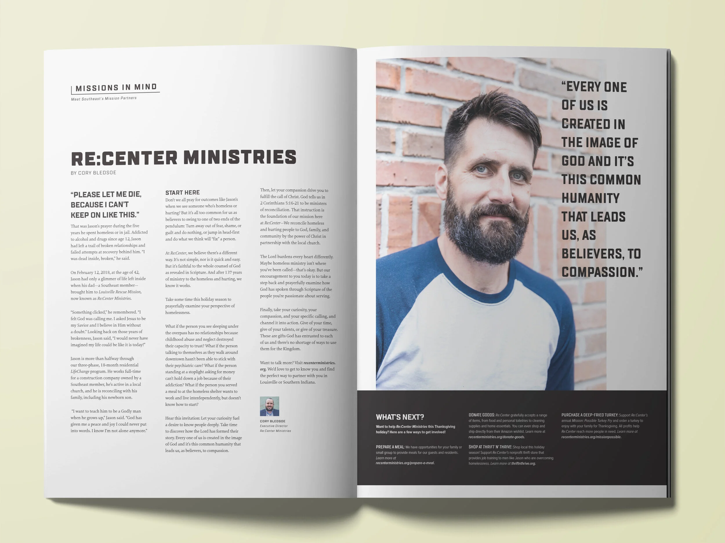 Monthly magazine design with collaboration from entire creative team for Southeast Christian Church. Responsible for design and photography of spreads below.